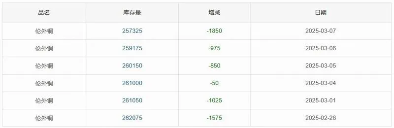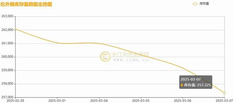 如上图所示,本周伦铜库存下降,较上一周减少4,750吨至257,325吨,环比上周跌幅1.81%。
